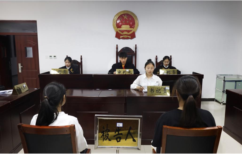 待全员入庭后,随着法锤的“咣”一声,庭审正式开始。本次模拟法庭案例是依据真实事件改编的,且融入校园欺凌、人格侮辱等当前社会较为关注的热点元素。案件围绕初中女生“刘月”和“王译文”因谈论网络主播发生口角,后“刘月”与“王景琦”等人对“王译文”实施人格侮辱的事件展开。“公诉工作既是一门充满斗争艺术的检察官工作,更是检察机关的一项门面工作。”扮演公诉人的法学类专业2021(2)班李乐文,在庭审中负责宣读起诉书、询问被告人、举证犯罪事实、致公诉词、对被告未成年进行法律教育等工作,是法庭中必不可少的角色。她表示,公诉人是检察机关的形象代言人,要成为一名优秀的公诉人,她还有很长的路要走。