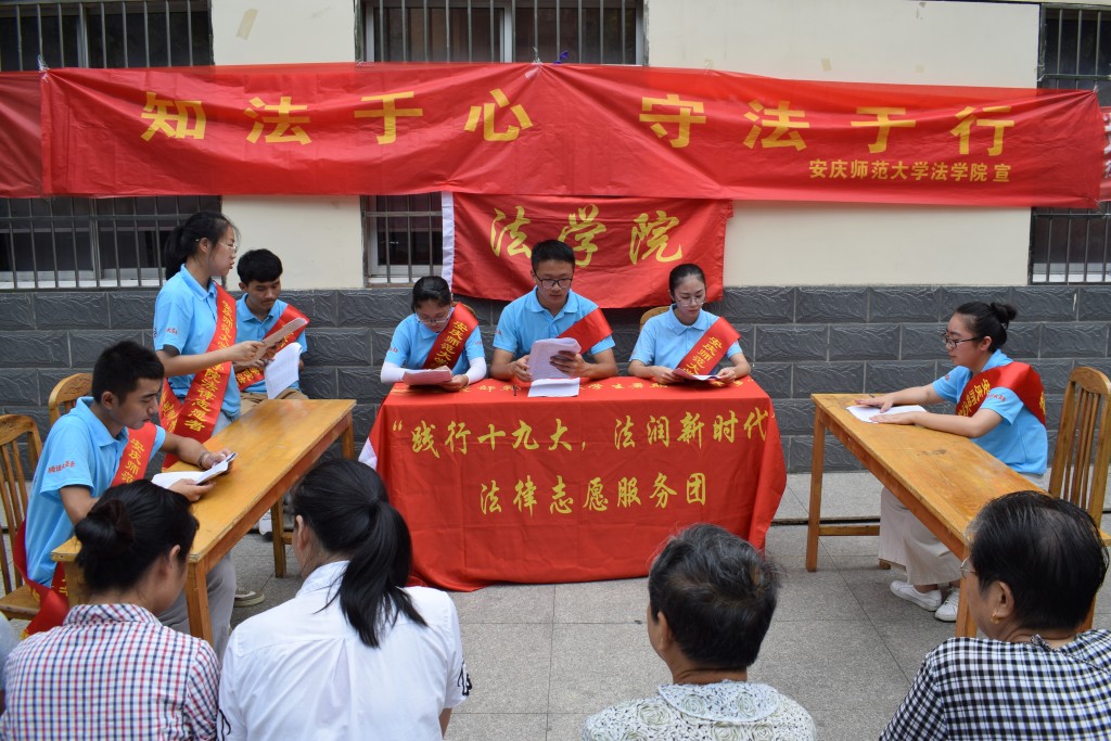 7月27日上午,tyc522cc太阳成集团“践行十九大,法润新时代”法律志愿服务队来到了安庆市菱湖社区,在这里开展了一系列的普法宣传活动。