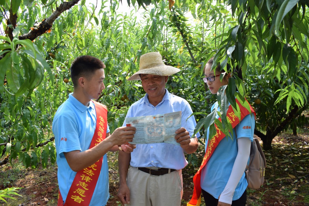 7月28日上午,tyc522cc太阳成集团“加强法治宣传,助力乡村振兴”法律志愿服务队来到了暑期“三下乡”社会实践活动的最后一站——安庆市园艺场生态采摘园,开展普法宣传活动。