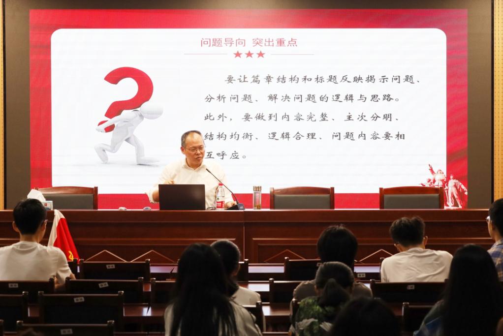 “老师,我们平时写作怎么才能抓住侧重点?”“老师,论文写作中怎样才能使研究的问题更有针对性?”……讲座结束后,员工们踊跃提问,崔汪卫逐一解答。他强调多看多写多揣摩,才能慢慢培养起对重点的敏感性,同时论文要明确研究问题,坚持内容为主题服务。
