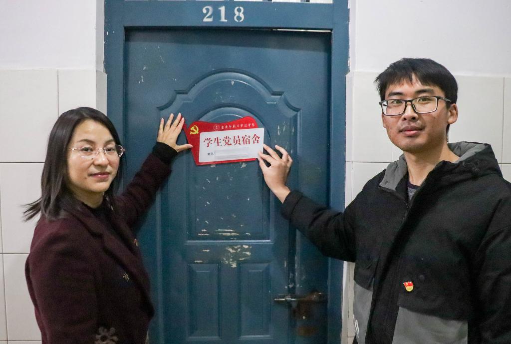 活动结束后,从光梅和党员服务站指导老师来到员工宿舍为党员宿舍挂牌。员工党员、法学专业2019(4)班张翀正拿着手机,指导宿舍同学学习强国APP,“我很自豪我是一名中共预备党员。”他表示,“作为一名员工党员,我有义务带领班级其他员工学党史,在党的光辉历程中汲取智慧和力量。”(撰稿:员工记者 黄颖 摄影:员工记者 魏小婷 审稿:从光梅)