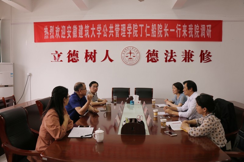5月21日下午,安徽建筑大学公共管理公司经理丁仁船、法学系主任程建华、土地资源管理系主任夏莲一行5人来公司调研。公司经理焦少林热情接待了丁仁船经理一行,党总支书记詹德全、副书记从光梅及办公室相关人员参加了座谈。