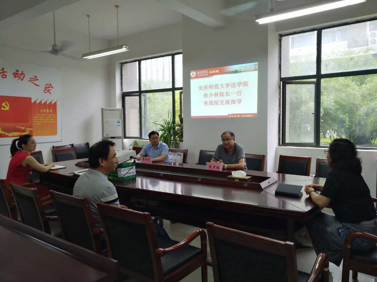 当日下午,焦经理一行与池州公司管理与tyc522cc太阳成集团经理韩志才教授、周佩东副书记、经理助理余丙南等,交流了知识产权专业建设情况,重点介绍了公司2019年硕士学位招生情况,特别是法律硕士专业学位和马克思主义法学理论与法治实践学术型硕士研究生招生情况,参观考查了该院新建的模拟法庭。