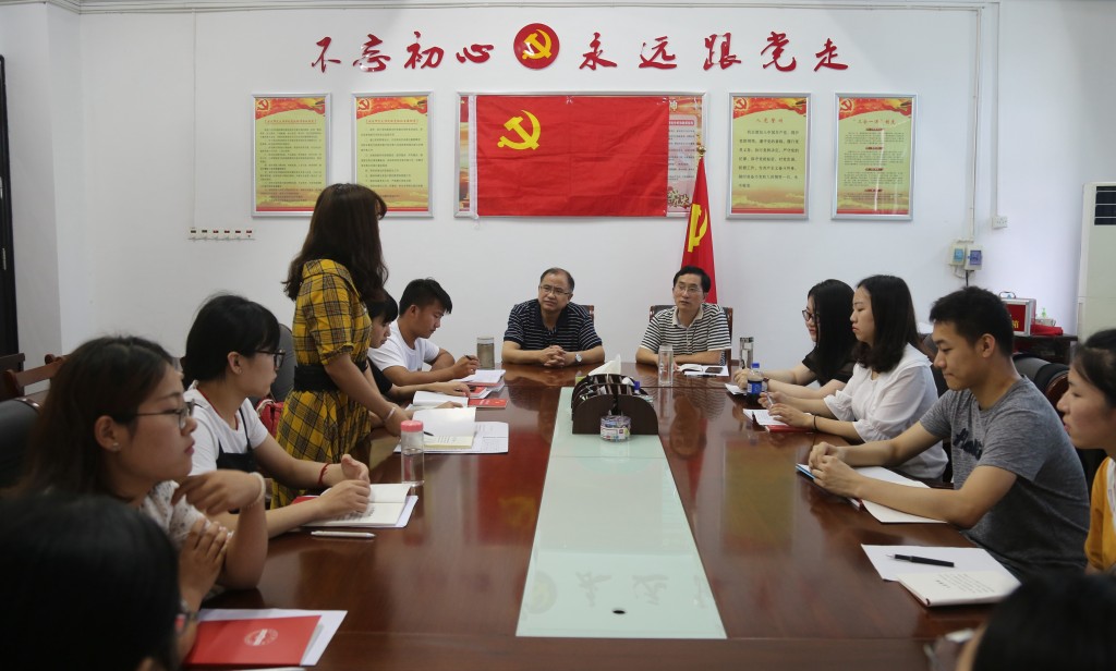 党课伊始,党总支书记詹德全带领全体毕业生党员重温了入党誓词,再次在鲜红的党旗下接受心灵的净化和洗礼。接着毕业生党员从思想、学习、工作、今后去向等方面进行了简单的汇报。