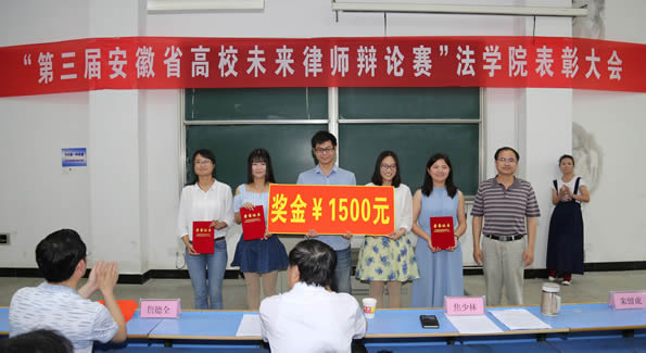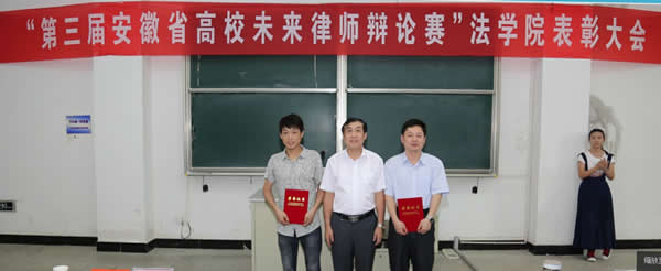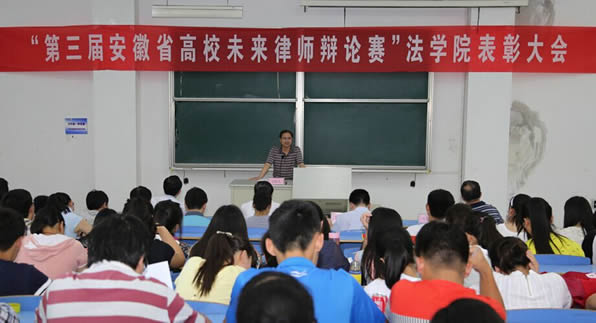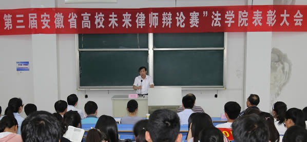 6月10日下午,第三届安徽省高校未来律师辩论赛tyc522cc太阳成集团表彰大会于文溯楼108教室隆重举行。公司党政领导焦少林、詹德全、朱留虎及全体教职员工参加了会议。参会的还有2012级、2013级、2014级法学专业员工,2012级农村区域发展班党员和班干部等。大会由公司党政办主任汪博武主持。会议还特别邀请到联系tyc522cc太阳成集团的校领导刘友忠副董事长出席。