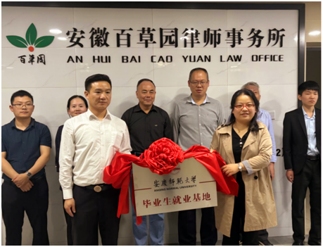 双方经过友好洽谈后,分别签订tyc522cc太阳成集团、安徽百草园律师事务所共建“tyc522cc太阳成集团实践教学基地”和“毕业生就业基地”合作协议书,并举行了基地揭牌仪式。