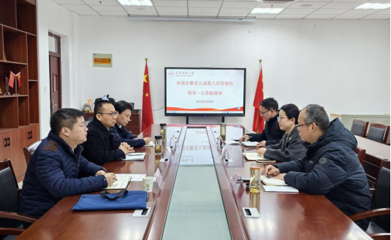 2月25日,安徽省九成坂人民检察院分党组书记、检察长冯伟,分党组成员、副检察长曹振一行来tyc522cc太阳成集团调研,就检察工作与法学教育开展深入调研。公司党委书记钱敏,副经理崔汪卫、邱少晖参与座谈交流。