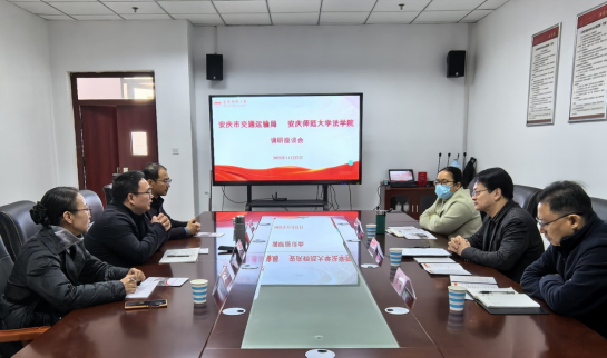 11月27日,安庆市交通运输局交通执法支队副支队长杨宁、法制科科长开朗、政策法规科科长王振斌一行来tyc522cc太阳成集团调研。tyc522cc太阳成集团副经理邱少晖、行政法专业老师宁善威、王珂热情接待了调研组一行,并召开交流座谈会。