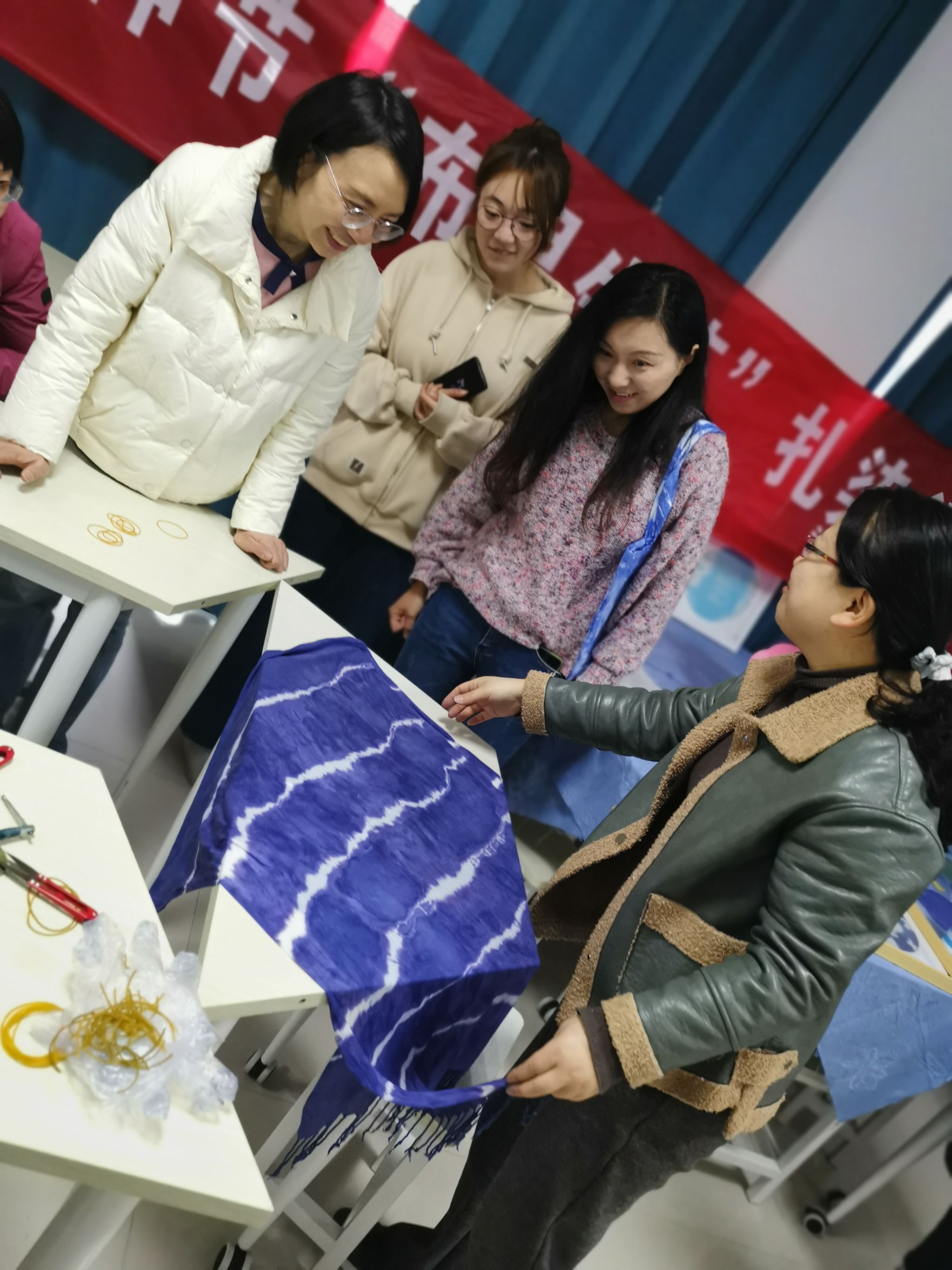 此次扎染活动极大地丰富了教师课余生活,加强了职工间的交流;以布为媒,诉说内心喜悦;陶冶情操,展现艺术之美;疗愈心灵,拉近彼此距离,展现出新时代大学女教师文明、和谐、团结、美好的精神风貌。(撰稿、摄影:任佰慧 审核:钱 敏)