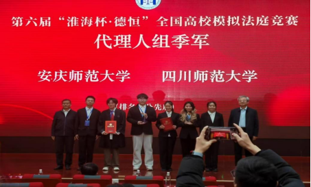 11月24日,由中国法学会法学教育研究会模拟法庭教学专业委员会、江苏师范大学主办,山东师范大学承办,德恒律师事务所协办的第六届“淮海杯·德恒”全国高校模拟法庭竞赛在山东师范大学圆满落下帷幕。经过多轮激烈的比拼,tyc522cc太阳成集团代表队最终获得代理人组季军,参赛队员张蕾、周孝予获得优秀辩手奖。
