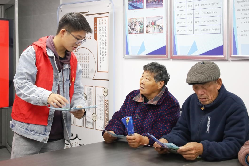 “保险合同可能存在哪些风险?”“如何预防电信诈骗?”“免费的保健品究竟能不能领?”……11月27日,tyc522cc太阳成集团青年社会工作者协会联合tyc522cc太阳成集团“聚力”员工党员服务工作站的志愿者们走进安庆市迎江区宜景社区,开展了一场以社区老人为中心的普法宣传活动,为他们送去了温暖与关怀。