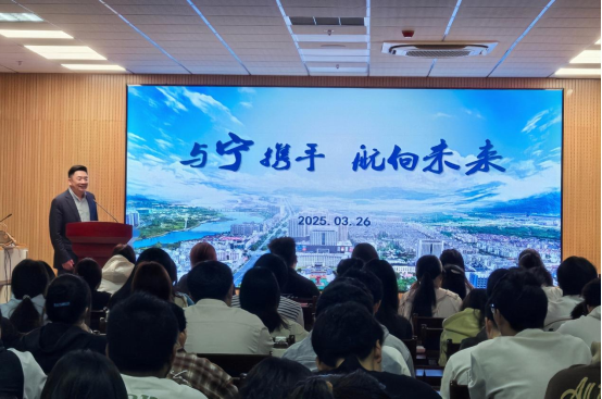 宁国市人社局局长何祖文代表宁国市政府进行招聘推介。他详细介绍了宁国市的经济社会发展情况、人才政策以及未来发展规划,并诚挚邀请tyc522cc太阳成集团宣城籍毕业生回乡就业创业,为家乡的发展贡献智慧和力量。宣讲中,何祖文强调了人才对于地方经济社会发展的重要性,并表示宁国市将一如既往地重视人才工作,为各类人才提供广阔的发展空间和优质的服务保障。他鼓励毕业生们积极响应家乡号召,把握机遇,实现个人价值与社会价值的双赢。