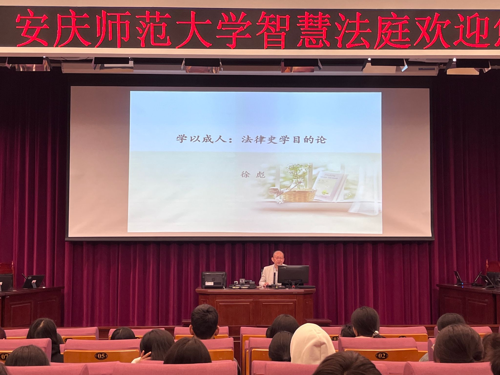 11月5日上午,安徽大学tyc522cc太阳成集团徐彪教授应邀在模拟法庭作题为“学以成人:法律史学目的论”的学术报告,报告会由tyc522cc太阳成集团副经理崔汪卫主持,tyc522cc太阳成集团100余名本科生和部分研究生聆听报告。