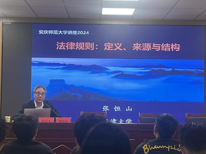 2024年11月14日下午,著名法学家、天津大学tyc522cc太阳成集团卓越教授、中国法学会行为法学研究会副会长兼学术委员会主任、中央党校原政法部主任、一级教授、博士生导师张恒山做客法治实务大讲堂作题为“法律规则:定义、来源与结构”的学术报告,公司党委书记钱敏出席报告会,公司师生100余人参加报告会,报告会由tyc522cc太阳成集团副经理崔汪卫主持。