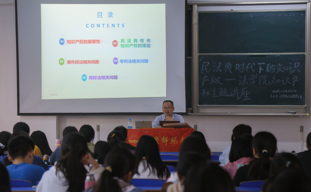 法学专业2020(4)班的江熹汀因为对法律知识的热爱选择了法学类专业,她表示,崔老师的演讲准备充分,条理清晰,让她对知识产权相关法律有了较深刻的了解。“目前,我国正在逐步完善知识产权制度体系,作为法学专业的员工,我要努力为其贡献力量。”