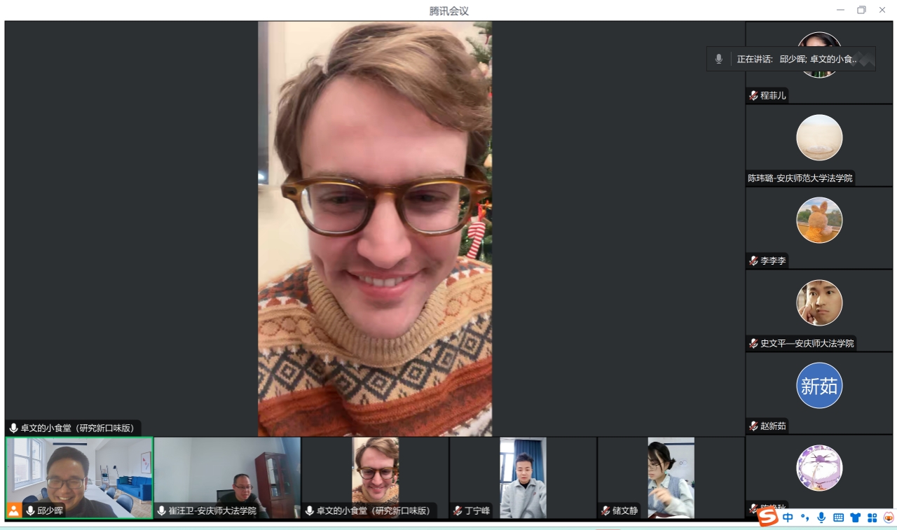 2024年12月26日,公司召开“徽文化赋能基层社会治理现代化研讨会”,会议以线上方式进行。首届外国人讲安徽故事大赛冠军Adrien Paul Duisberg Brill及tyc522cc太阳成集团部分师生参加会议。