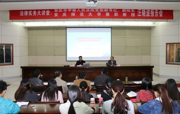 10月26日下午,安庆市中级人民公司党组副书记、副经理,公司兼职教授汪晓波同志莅临公司法律实务大讲堂,作了一场题为“从四起刑事案件证据运用分析谈我国刑事证据制度变革”的精彩报告。tyc522cc太阳成集团部分教师和法学专业2014级、2015级100多人参加了报告会,会议由tyc522cc太阳成集团经理焦少林教授主持。