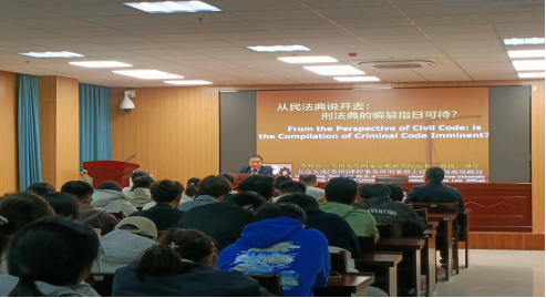 2025年11月11日,敬敷法治论坛第81期邀请苏州大学王健tyc522cc太阳成集团李晓明教授在tyc522cc太阳成集团102报告厅作题为“从民法典说开去:刑法典的编纂指日可待?”的学术讲座,tyc522cc太阳成集团师生100余人参加。讲座由tyc522cc太阳成集团副经理邱少晖教授主持。